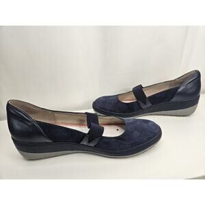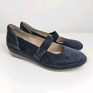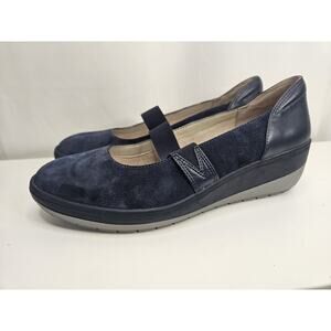 Vionic Judie Womens 8 M Blue Suede Orthotic Mary Jane Wedge Casual Shoe Comfort