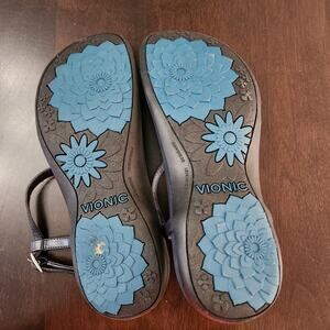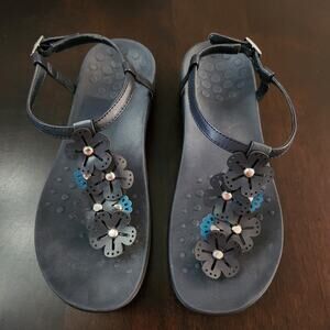 Vionic Julie II Floral Slingback Sandal in great pre-loved condition! Floral design on toe lost with adjustable buckle ankle strap.