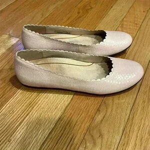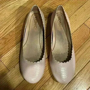 Keywords: Vionic, Julieta, ballet flats, pink flats, snake embossed leather, scalloped edge, cushioned insole, women's shoes, size 8.5, versatile footwear, elegant flats, comfortable shoes, casual wear, formal occasions.