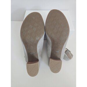 Vionic Kaia Gray Peep Open Toe Ankle Strap Suede Block Heel Sandals Shoes 10