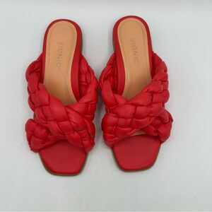Vionic Kalina Braided Cross Strap Sandals Size 8.5 Poppy Square Toe Comfort