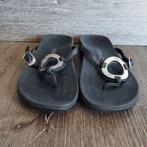 Vionic Karina Flip Flop Thong Sandals Slip On Black Leather Women's Shoes Size 6 B-3
