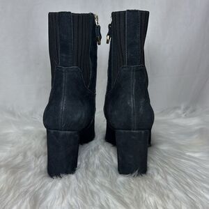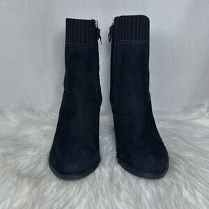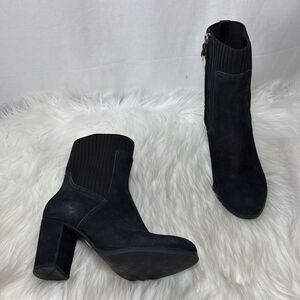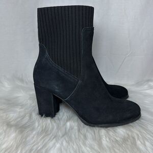 Vionic Kaylee Black Suede/Fabric Weather Resistant Side Zip Booties Sz 7.5