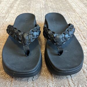 Vionic Kenji Braided Wedge Flip Flop Sandal Women's 8.5 Black Comfort Platform