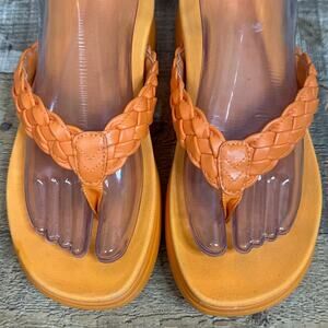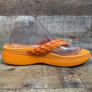 Vionic Kenji Platform Sandals Braided Strap Thong Marigold Orange Size 8.5