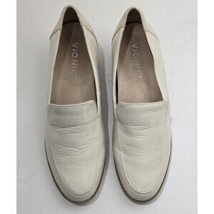 Vionic Kensley Patent Leather Loafers Arch Support Cream Sz 6.5 Minimalist