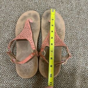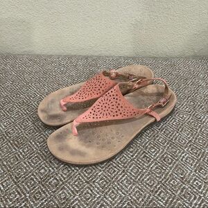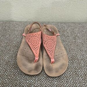 Vionic Kirra T Strap Thong Sandal Coral Laser Cut Suede Sz ?? 10’ Long Comfy