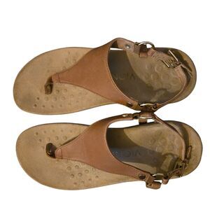 Vionic Kirra Tan Leather Sandals Size 6 Cognac Slingback Brown Preppy