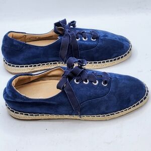 Vionic Lace Up Espadrille Flats Coast Sandy Suede Orthotic In Blue Size 7.5