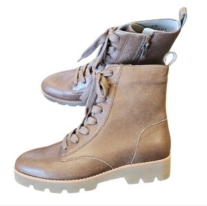 Vionic Lani Combat Boots GREIGE Womens Vintage Leather