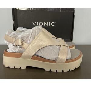 Vionic Leather Comfort Sandals, Alondra Lug, Gold Size 10 – New in Box