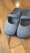 Elegant gray mules with perforated design. Features adjustable strap for a secure fit. Ideal for everyday wear.