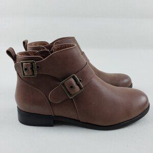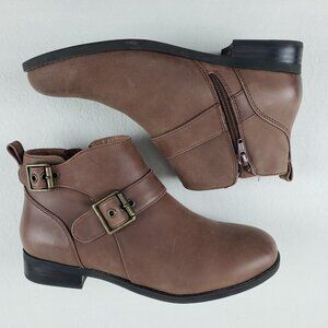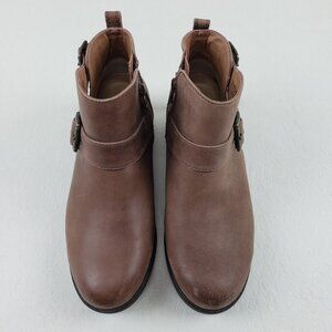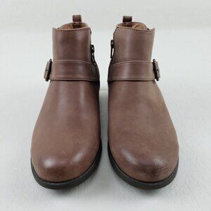 Vionic Logan Ankle Boot Womens 7.5 Brown Leather Side Zip Buckle Comfort Bootie