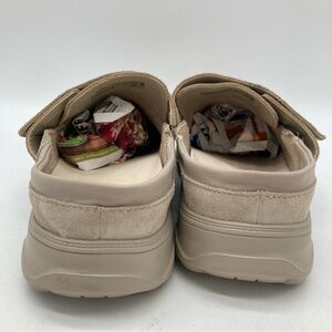 This listing is for a pair of Vionic Lotus Rx mules. These mules have a lightweight sole, velcro closure, and are made of suede. They're in excellent used condition, with no major flaws to note. Please see photos for details.