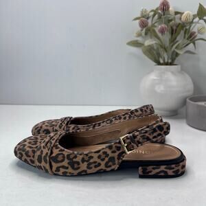 Vionic Lynda Leopard Print Square Toe Slingback Flats Tan/Black Women's 6M