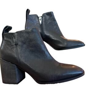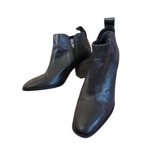 Minimalist Euro Chic leather ankle boots with stacked block heel, zip closure, and almond toe. Gently used, clean, and supple—crafted from genuine leather inside and out for lasting comfort and style. Slip-on ease with orthotic arch support and cushioned interior. #QuietLuxury #MinimalistStyle #ComfortBoots #TimelessClassicBoots #BlackLeather