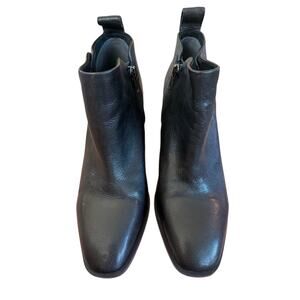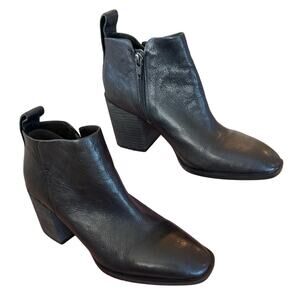 Vionic Lyssa Black Leather Block Heel Ankle Boots 7 Comfort Minimalist Classic