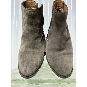 Vionic Madeline Booties 8M Taupe Suede Block Heel Ankle Boots Side Zip