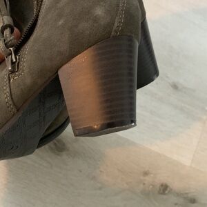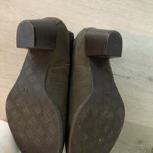 Vionic Madeline Exclusive Olive green size 8.5 Wide tassels chunky Heels Zipper