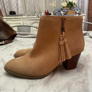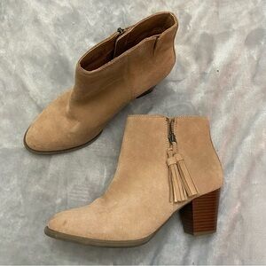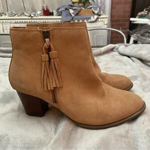 Gorgeous low heeled suede ankle booties with gorgeous leather tassel detail! Excellent condition