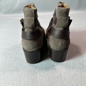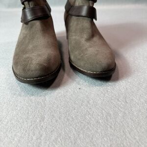 Vionic Mana Boots Womens 6.5 Orthaheel Grey Suede Buckle Straps Block Heel