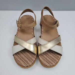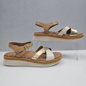 Vionic Mar Sandal Women 10 WIDE Tan Metallic Gold Leather Platform Espadrille
