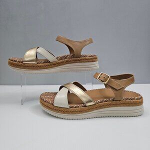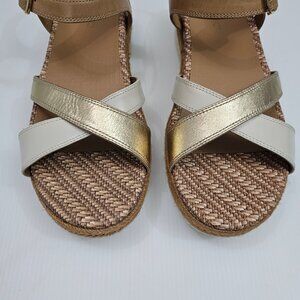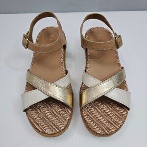 Vionic Mar Sandal Womens 10 Stappy Tan Metallic Gold Leather Platform Espadrille