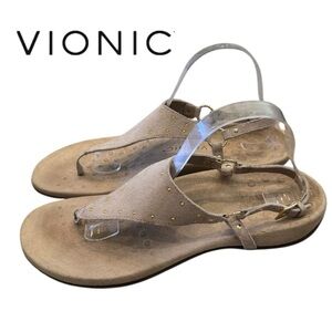 Vionic Margot Suede Gold Studs Adjustable Backstrap Women's T-Strap Sandals 11