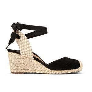 These Vionic Espadrilles are stylish wedge sandals in a classic black color, perfect for various occasions like travel, weddings, parties, work, or business events. Featuring a round toe shape and lace-up closure, these heels have a high heel height, making them ideal for adding some extra height and style. The sandals are designed with a canvas upper material, leather outsole, and leather insole, providing both comfort and durability for all-day wear during the summer, fall, and spring seasons.