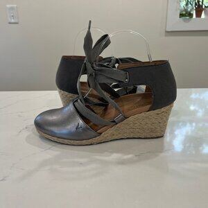 Vionic Marisa Wedge Ankle Tie Espadrille Sandal Party Comfy Silver Sz 8 silver