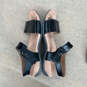 Vionic Marsala Metallic Adjustable Black Sandals Sz 7.5 WIDE Podiatrist Designed