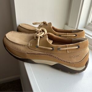 Vionic Men's Orthopaedic Beige Leather Boat Shoes, Size 12