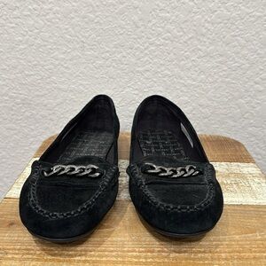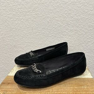 Vionic Mesa Black Suede Chainlink Loafers Size 7