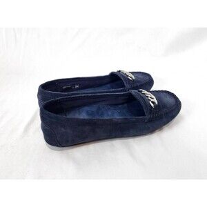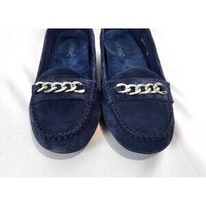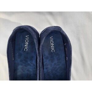 Vionic Mesa Loafers Flats Navy Blue Suede Womens 8 Wide Slip On Comfort Chain