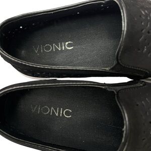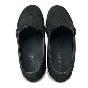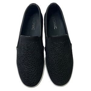 Vionic Midi Perforated Leather Slip On Sneaker Shoes Black Womens Size 7