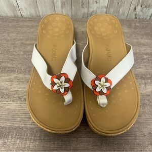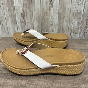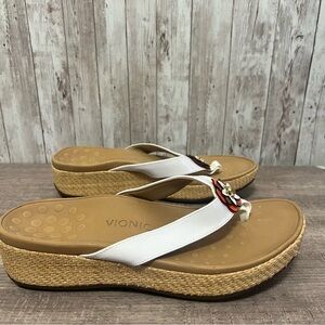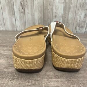Experience the perfect blend of comfort and style with Vionic's sandals, featuring a chic white strap and a tan footbed. These sandals are ideal for any casual summer outing. Barely worn, size 9