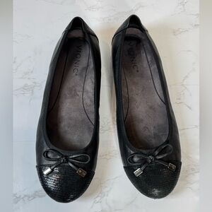 Vionic Minna Black Ballet Flats Bow Cap Toe Leather Comfort Shoe Size 7.5