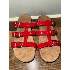 Vionic Misa Red Patent Leather Triple Strap Adjustable Slide Sandals Size 10