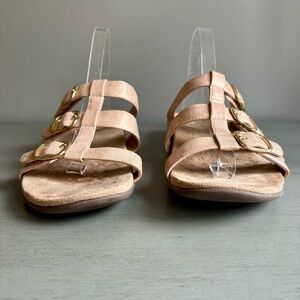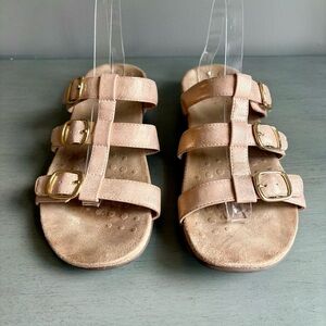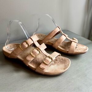 Vionic Misa Women Orthotic Slide Sandal Size 9 Rose Gold Blush Gold Buckles Arch Support Strappy Comfortable Walking