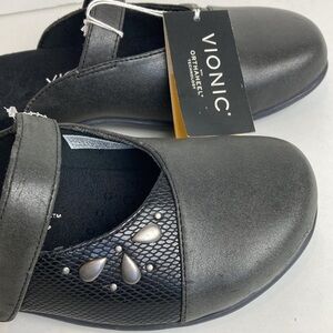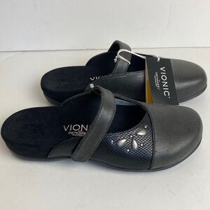 Vionic NWT Kristin Slip-On Mules Clogs Adjustable Straps Black Size 7 Comfort