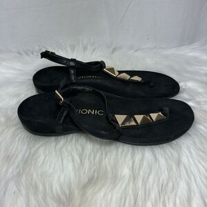 Vionic Nana Black Leather Gold Embellished Sandals Sz 8