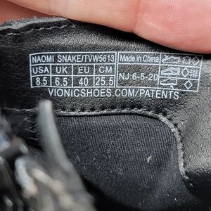Vionic | Naomi Snake Black Suede Heeled Booties.