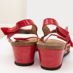 Vionic Natasa Sandals Patent Leather Snakeskin Wedge Open Toe Comfy Red Size 7
