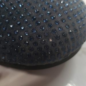 Elegant navy blue flats with sparkling rhinestone accents. Comfortable and stylish for any occasion.
