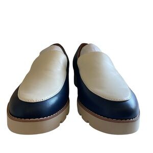 Vionic Navy Cream Nappa Leather Chunky Loafer 8 1/2 Wide NWT in Box