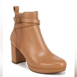 Vionic Nella Ankle Boots Heeled Camel Light Brown Tan Leather Water Repellent 9