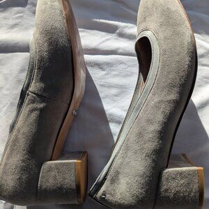 Natalie pump, with an elastic trim and rubber sole for a glove-like fit and glamour-on-the-go—versatile slate grey suede size 8, 2 inch heel. New without box, never worn. The Natalie slip-on pump perfects your office-ready look.