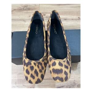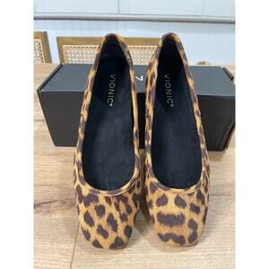 Vionic Orinda Ballet Flats Dark Brown Leopard Print Size 6 Narrow NIB Square Toe