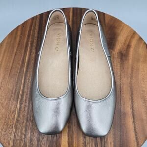Vionic Orinda Ballet Flats Women's 6 Pewter Leather Slip On Office Work Shoes
