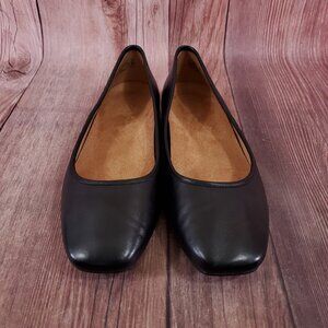 Vionic Orinda Ballet Flats Womens Size 8.5 Wide Square Toe Shoes Black Leather